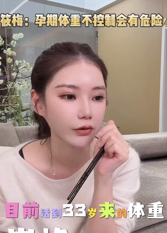 汪小菲此举直接承认了马筱梅已经怀孕的事实,而下一秒马筱梅回来接档汪小菲直播,她透露现在是自己近33年来的体重巅峰,已经很胖了需要控制体重,当网友宽慰她孕期不需要控制体重时,她表示不行,因为胖太多不仅对孕妇不好,对胎儿也不好。